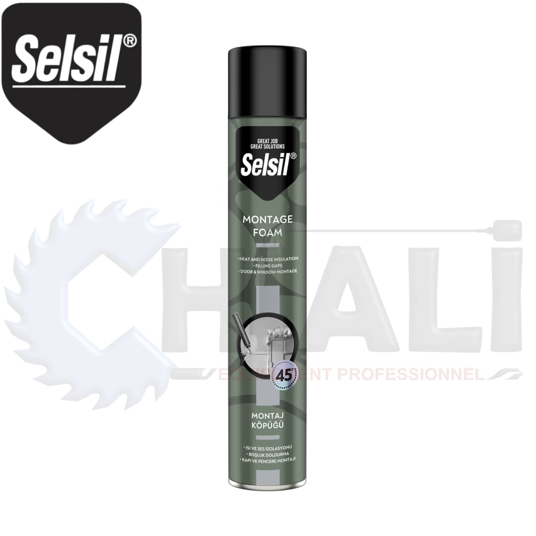Selsil Montage Foam 750g est un matériau de remplissage et d'isolation monocomposant à base de polyuréthane durci par l'humidité atmosphérique.